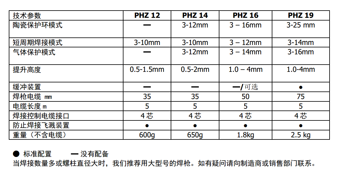 PHZ系列螺柱焊枪技术参数